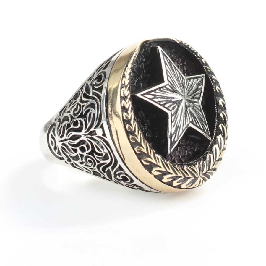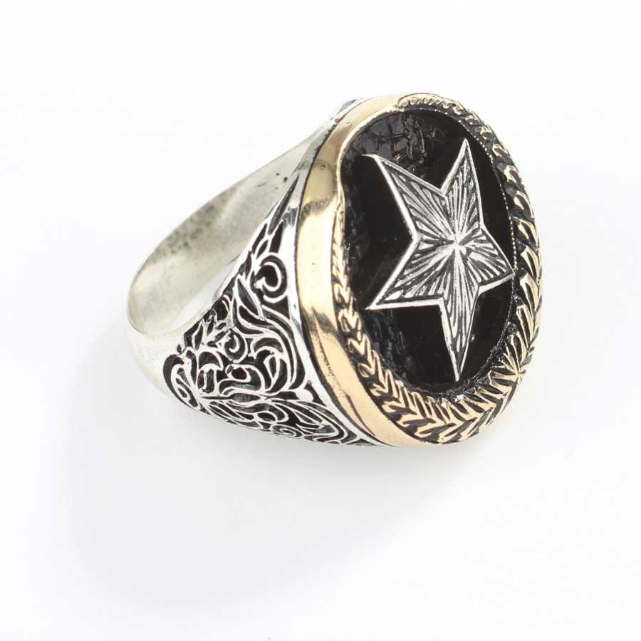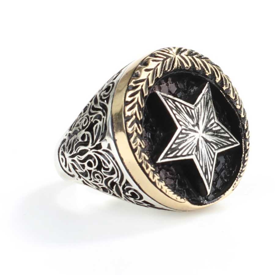 925 Ayar Gümüş Kut'ül Amare Ay Yıldız Erkek Yüzük