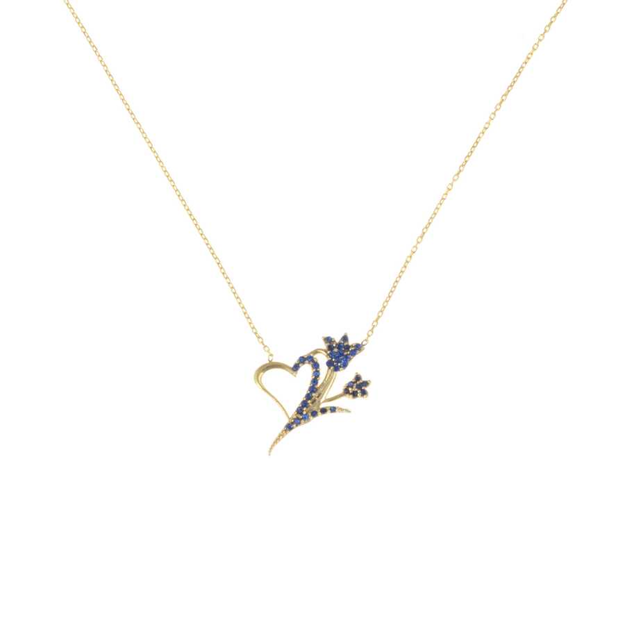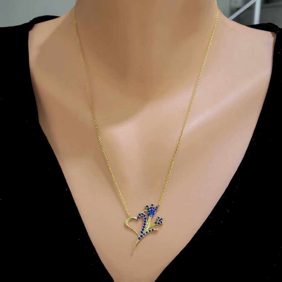 925 Ayar Gümüş Lacivert Taşlı Kalp ve Lale Kolyesi