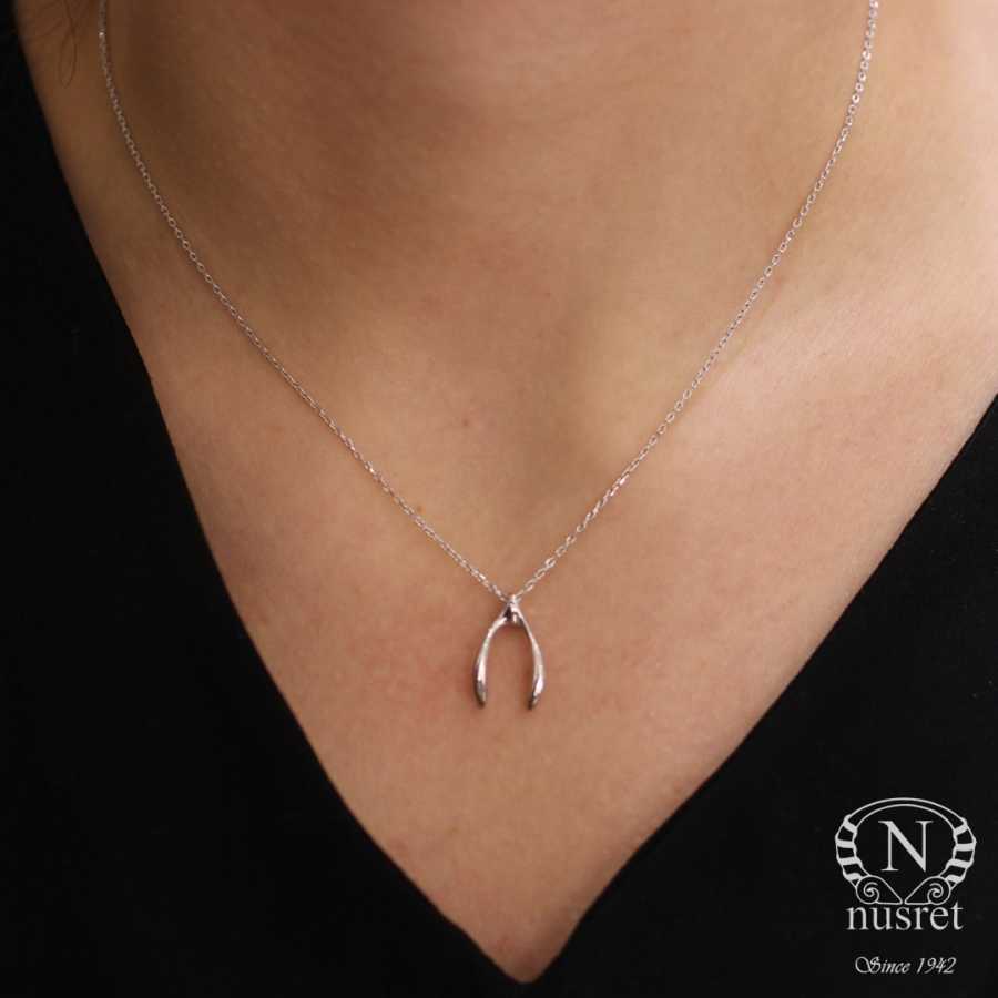 Gümüş kolye 925 ayar gümüşten yapılmıştır. Lades kemiği kolye 1,2 cm'ye 1,7 cm boyutlarındadır. Zincir 45 cm uzunluğundadır. Kolye taşsızdır. Ağırlığı 2 gramdır.