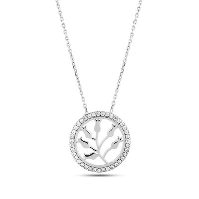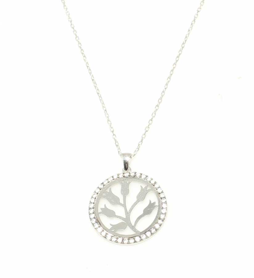 925 Ayar Gümüştür. Zincir boyutu: 41 cm. 2 cm çapında Taşlı Lale motifli Kolye. Gramı: 2,4 gr
