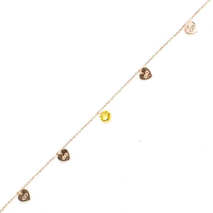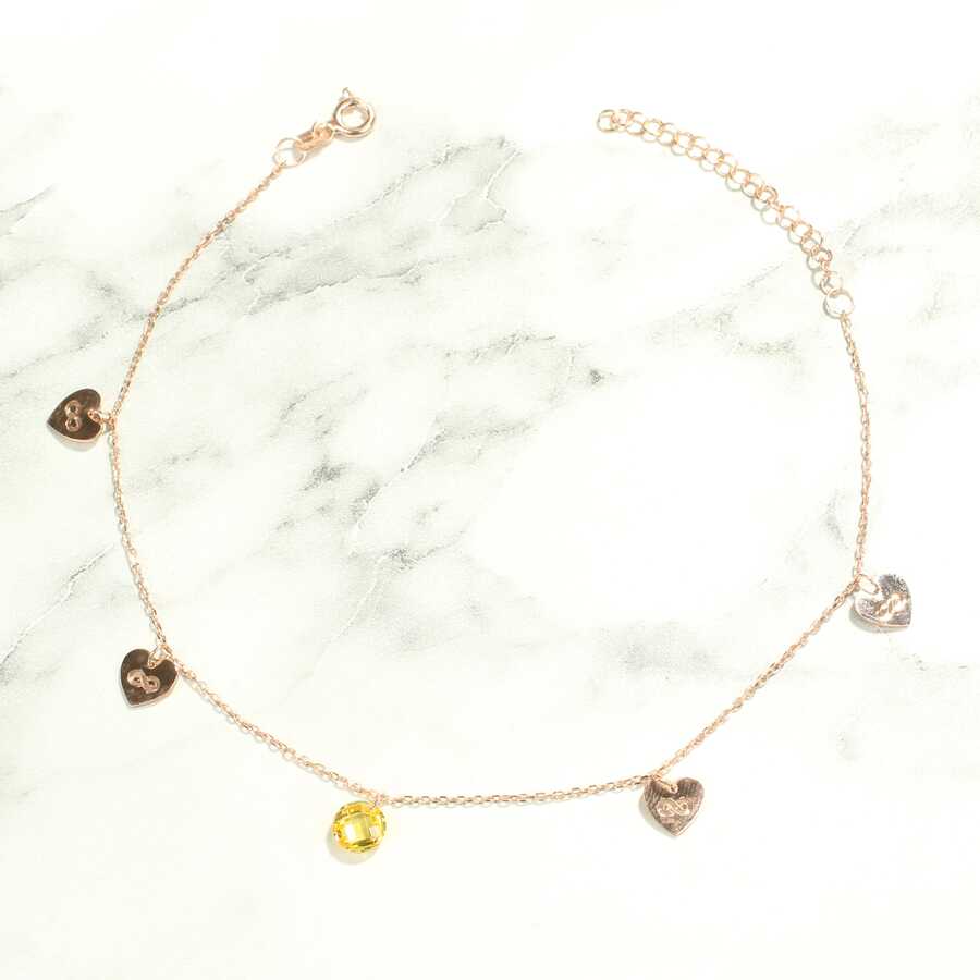 925 ayar gümüştür. Limon kuvars taşlı ve 4 adet kalp ve sonsuzluk şeklinden oluşmaktadır. Halhal Uzunluğu: 20,5 cm + 4 cm uzatma zinciri vardır. Rose renktedir. Gramı: 1,77 gr925 Ayar Gümüş Limon Kuvars Taşlı Kalp & Sonsuzluk Modeli Halhal