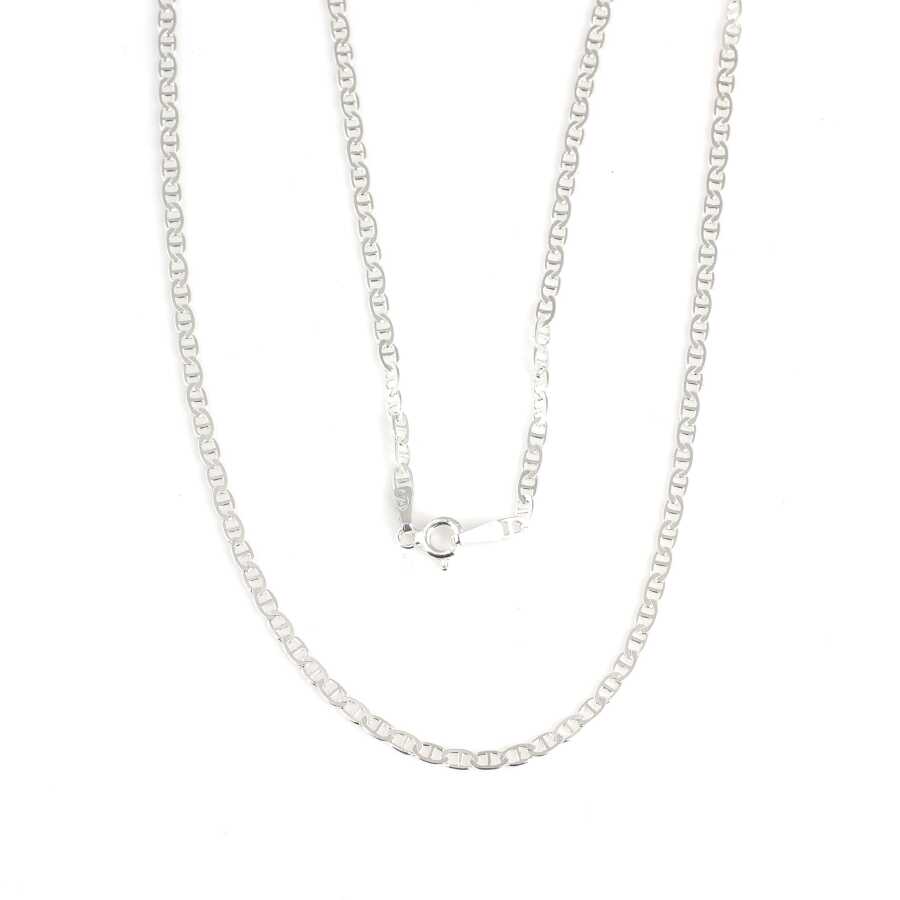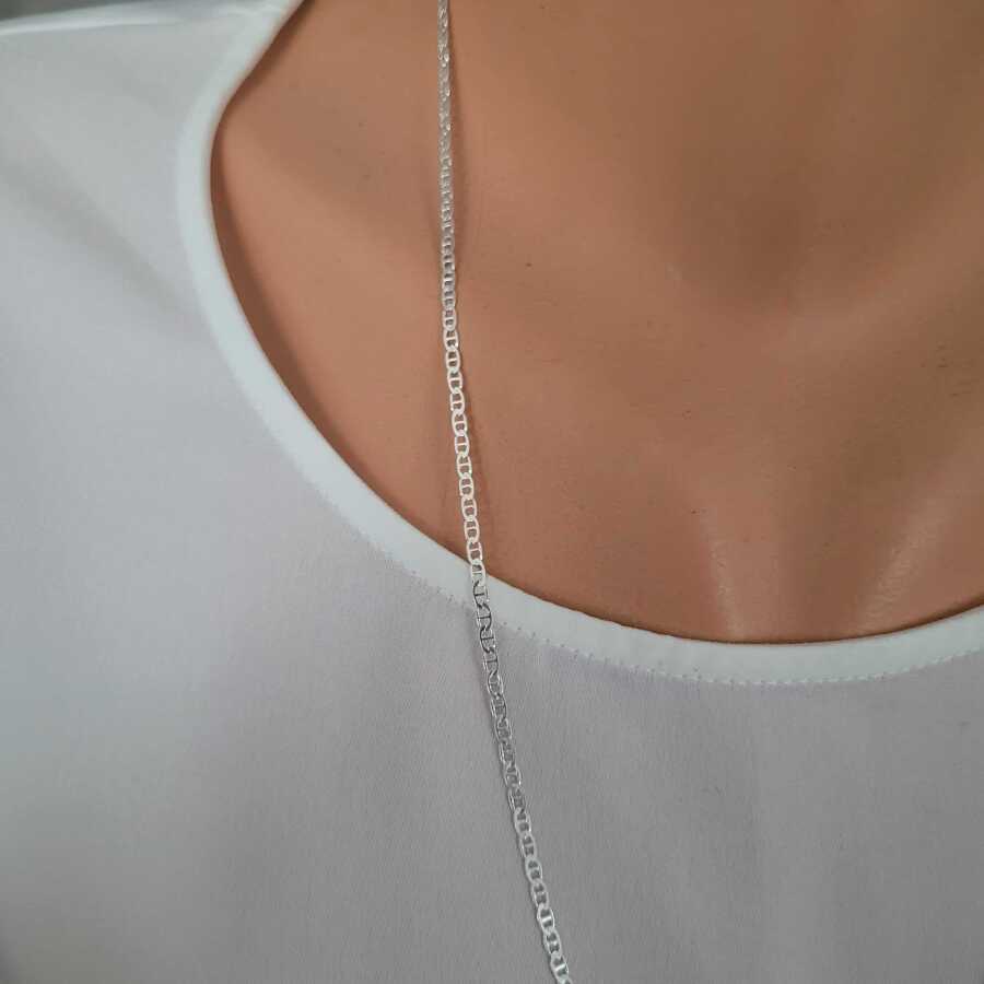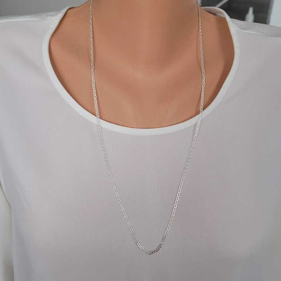 Gümüş kolye 925 ayar gümüşten yapılmıştır. Flat mariner model zincir kolye 62 cm uzunluğundadır. Kolye taşsızdır. Ağırlığı 5,07 gramdır.