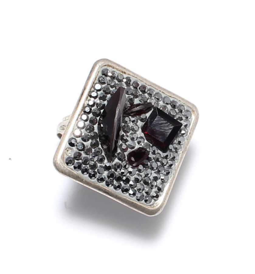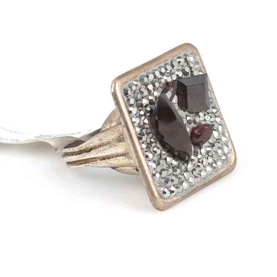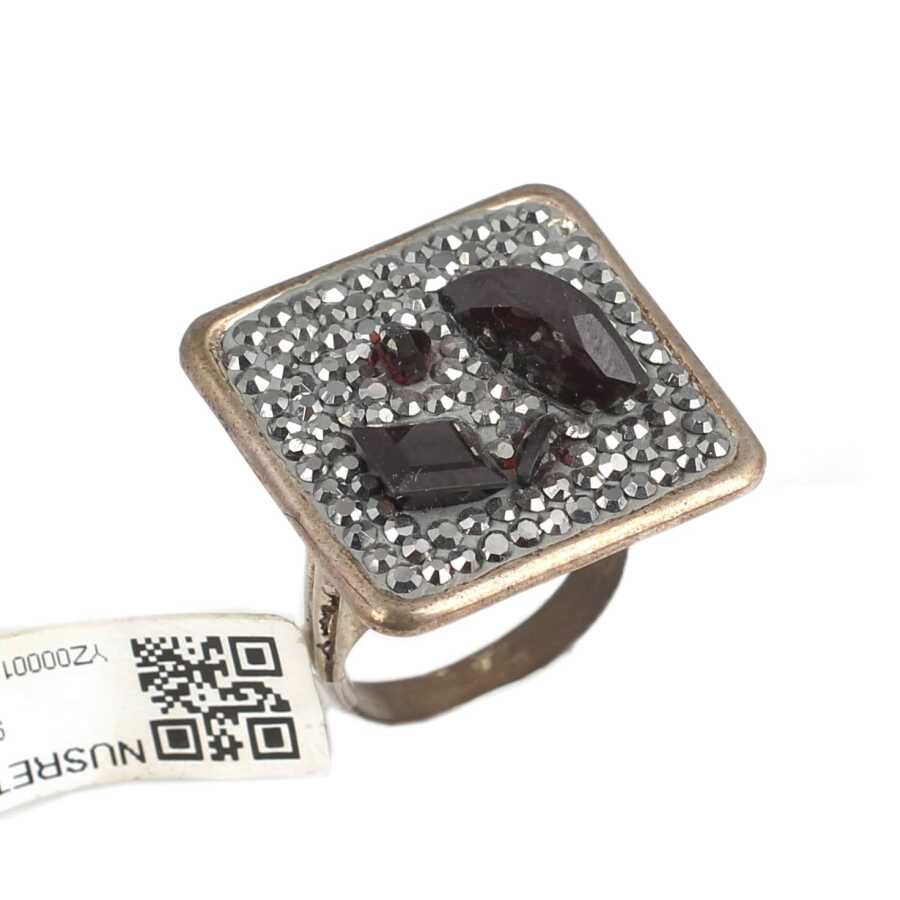 925 Ayar Gümüş Markazit ve Garnet Taşlı Yüzük