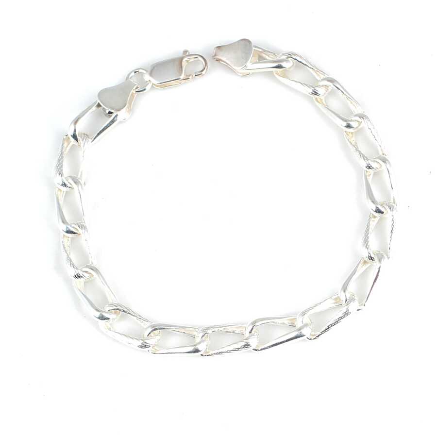 Notify me when its in stock Bileklik 925 ayar gümüşten imal edilmiştir. Oval burgulu zincir bileklik 20,5 cm uzunluğundadır. Bileklik 0,7 cm genişliğinde ve 0,3 cm kalınlığındadır. Gümüş oval parça 1,4 cm'ye 0,7 cm boyutlarındadır Oval parçalarının üzeri düz ve martole desenlidir. Bileklik taşsızdır. Zincir bileklik gümüş renk rodajlıdır. Ağırlığı 12,72 gramdır.
