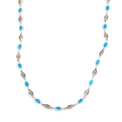 925 Ayar Gümüş Mavi Sedef Mineli Telkari Kolye