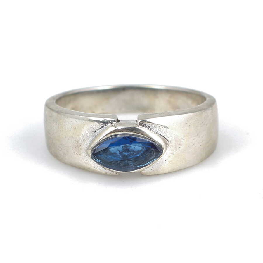 Gümüş yüzük 925 ayar gümüşten yapılmıştır. Gümüş yüzüğün üst kısmı 0,7 cm boyutlarındadır. Yüzük mavi zirkon taşlıdır. Yüzük 13 ölçüdür.