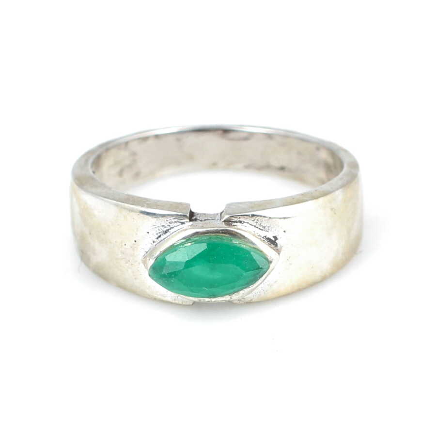 Gümüş yüzük 925 ayar gümüşten yapılmıştır. Gümüş yüzüğün üst kısmı 0,7 cm boyutlarındadır. Yüzük yeşil zirkon taşlıdır. Yüzük 13 ölçüdür.