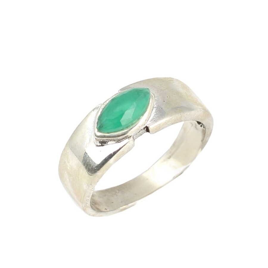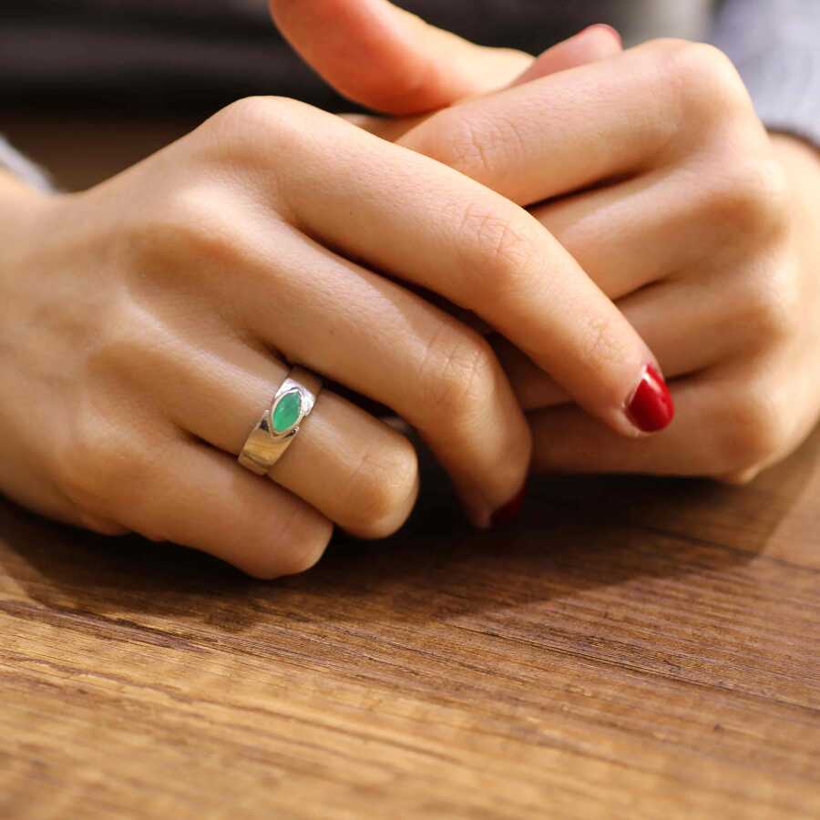 925 Ayar Gümüş Mekik Yeşil Taşlı Alyans Model Yüzük
