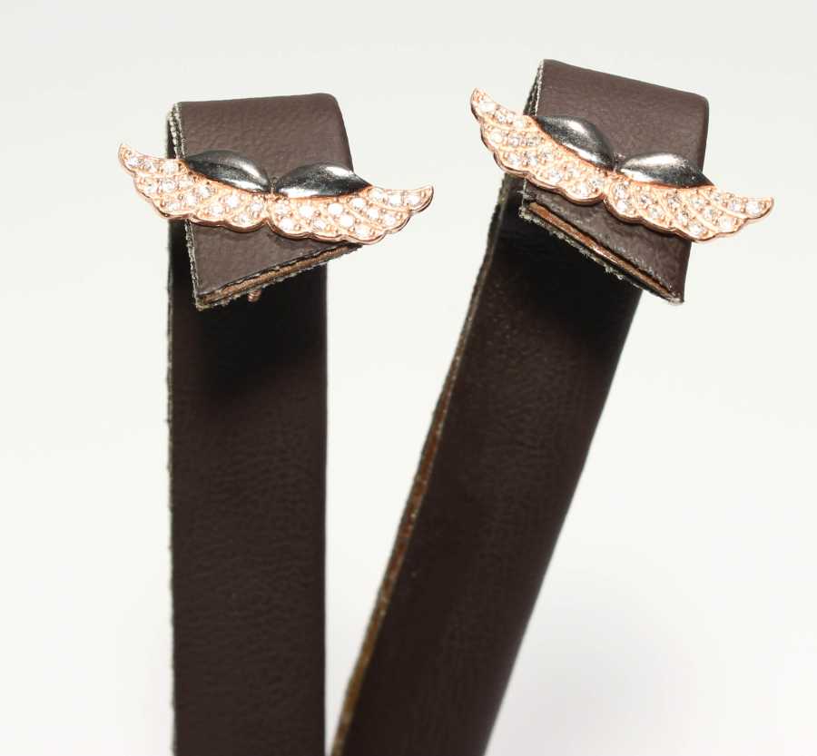 Gümüş küpe 925 ayar gümüşten yapılmıştır. Melek kanadı şeklindeki taşlı küpe 2,0 cm'ye 0,50 cm boyutlarındadır. Küpe zirkon taşlıdır. Rose renk rodajlıdır. Ağırlığı 1,42 gramdır.
