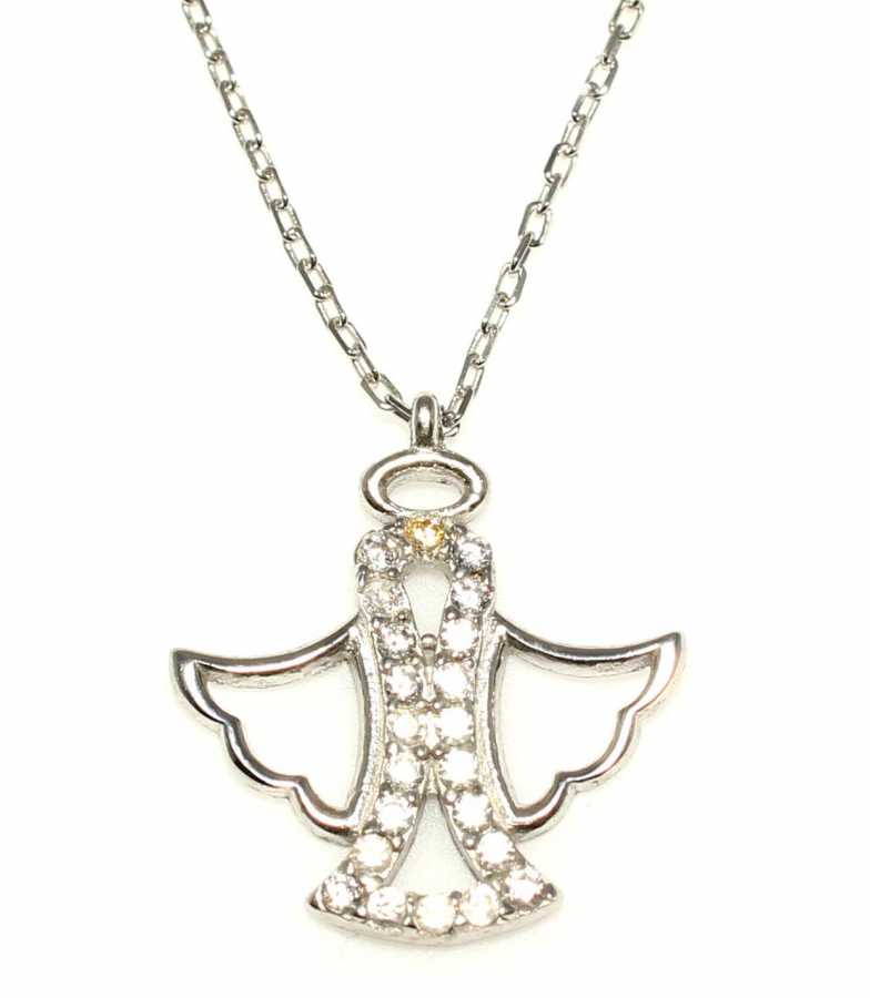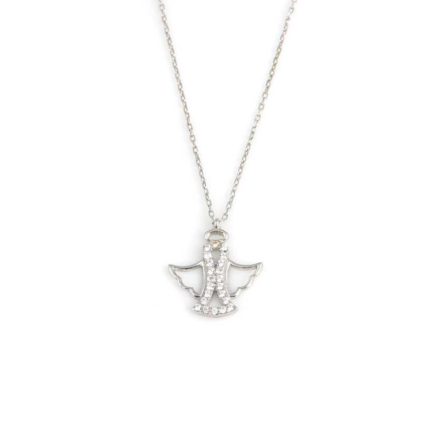 Gümüş kolye 925 ayar gümüşten yapılmıştır. Melek kolye 1,6 cm boyutlarındadır. Zinciri 44 cm uzunluğundadır. Kolyenin taşları zirkondur. Ağırlığı 1,95 gramdır.