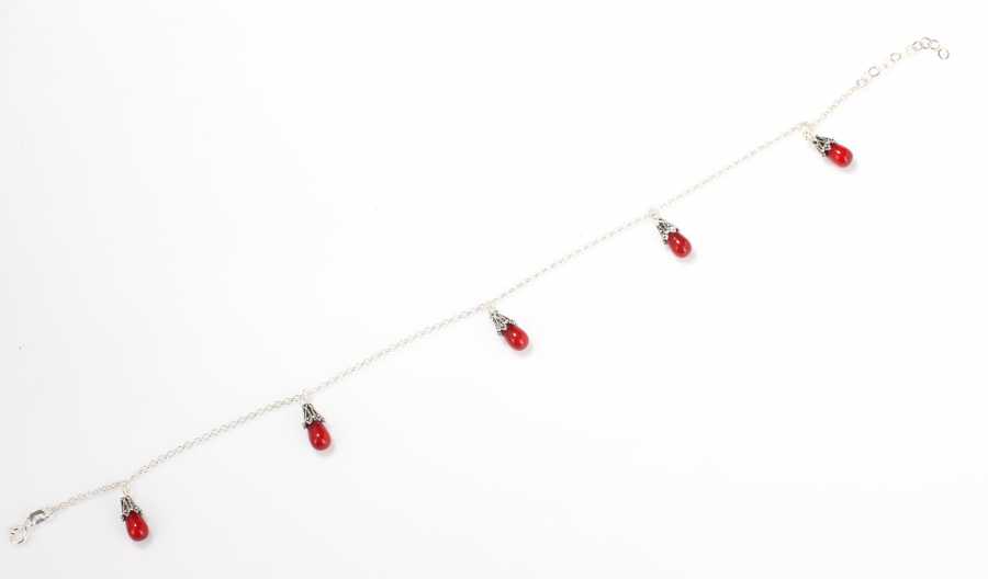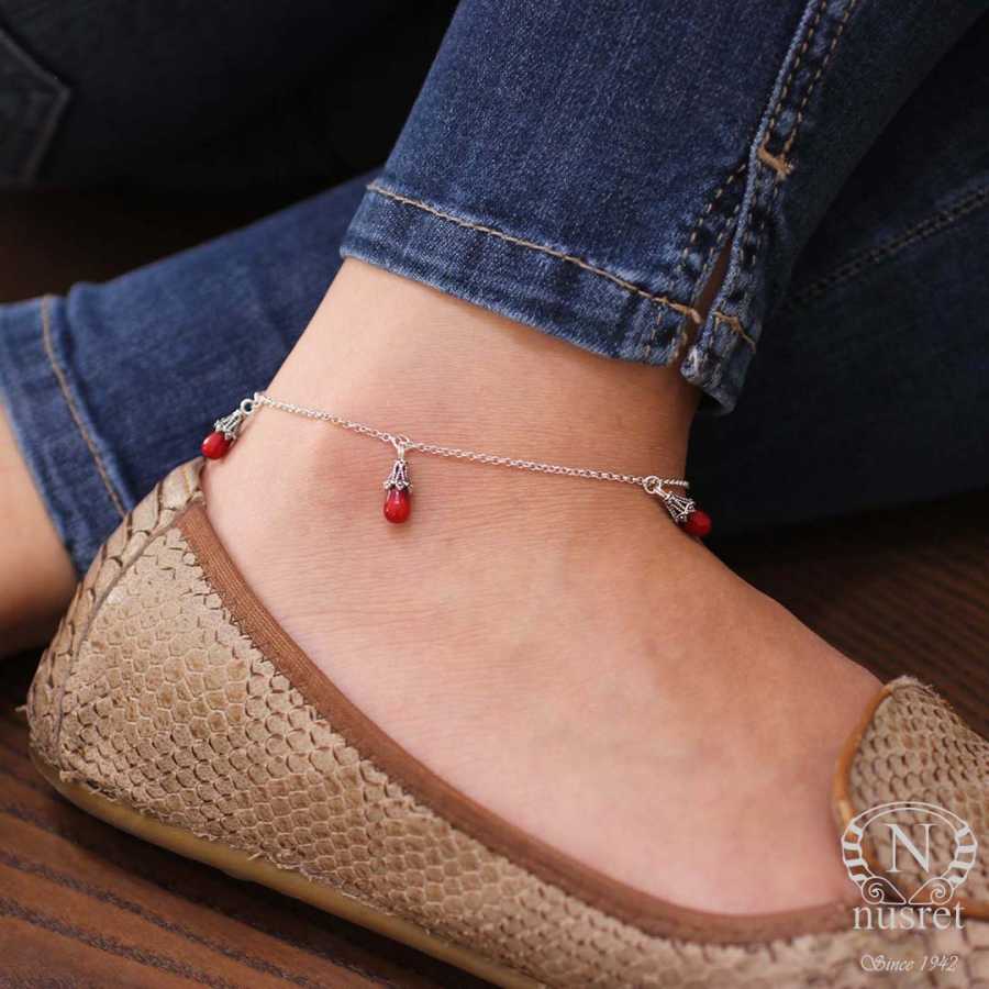 Bu mücevher parçası 925 ayar gümüşten imal edilmiştir. Halhal 24 cm uzunluğundadır. Uzatma zinciri ile 27 cm'ye kadar uzatılabilir. Halhal mercan taşlıdır. Halhalın ağırlığı 4,61 gramdır.
