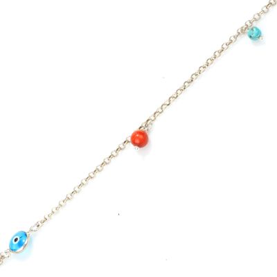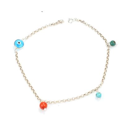 925 Ayar Gümüş Mercan, Turkuaz ve Cam Göz Halhal