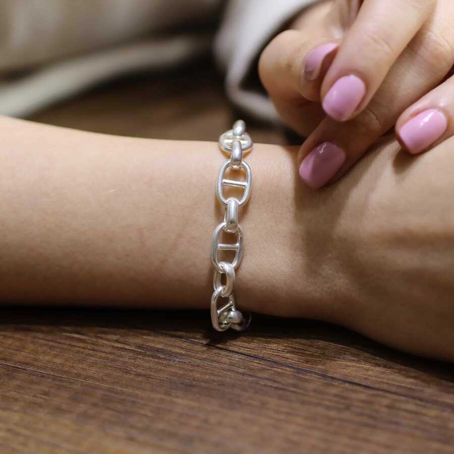 Gelince Haber VerBileklik 925 ayar gümüşten imal edilmiştir. Merdiven bileklik 19 cm uzunluğundadır. Bileklik 0,8 cm genişliğindedir. Gümüş parça 0,8 cm'ye 1,1 cm boyutlarındadır. Bileklik taşsızdır. Zincir bileklik gümüş renk rodajlıdır. Ağırlığı 14,71 gramdır.