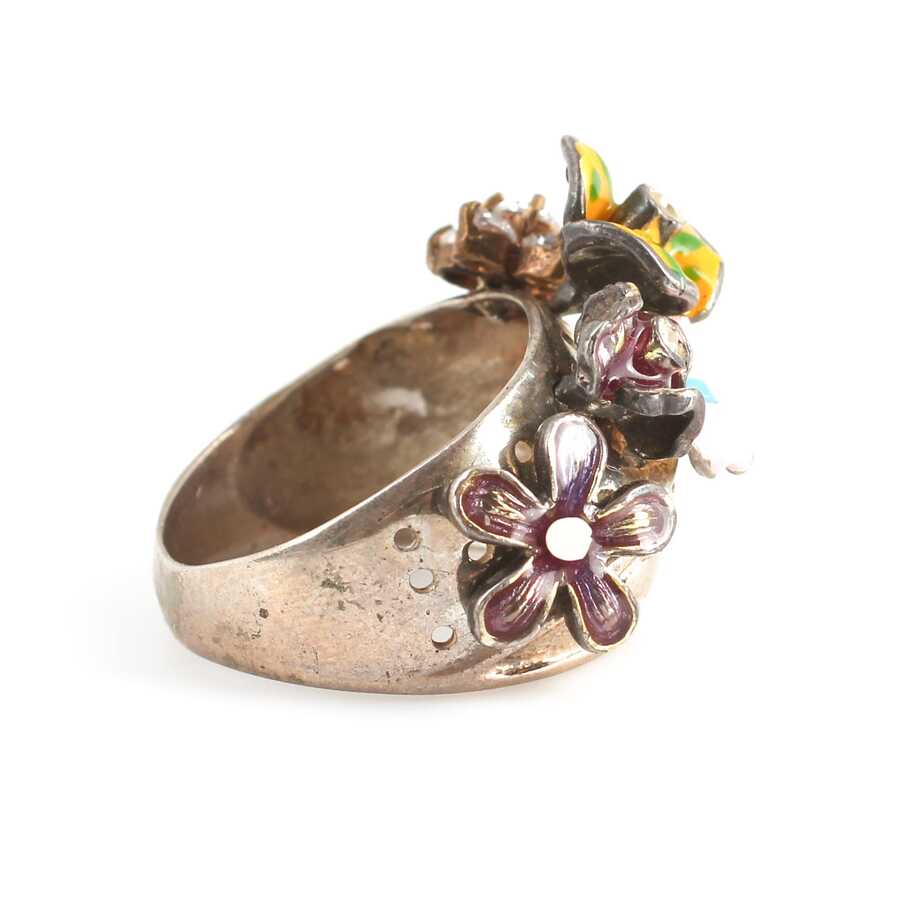 925 Ayar Gümüş Mineli Çiçekli Fantezi Yüzük