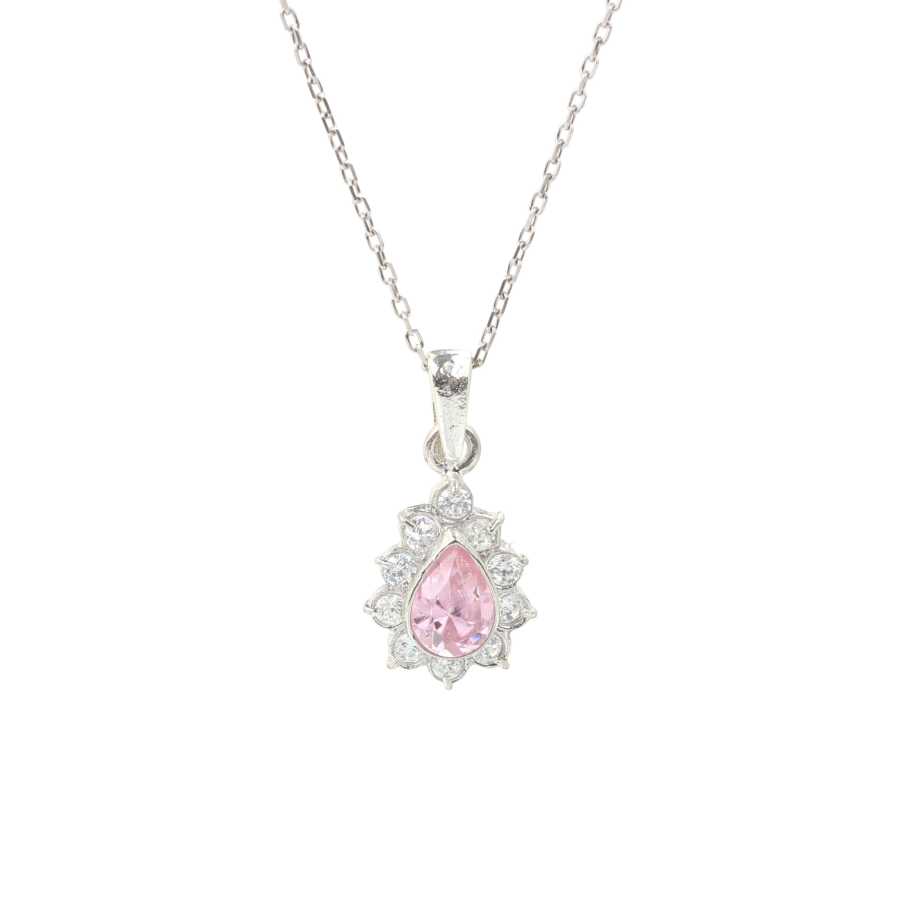 925 Ayar Gümüş Minik Çiçek Tasarım Damla Pembe Kuvars Taşlı Kolye