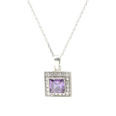 925 Ayar Gümüş Minik Kare Ametist Taşlı Kolye