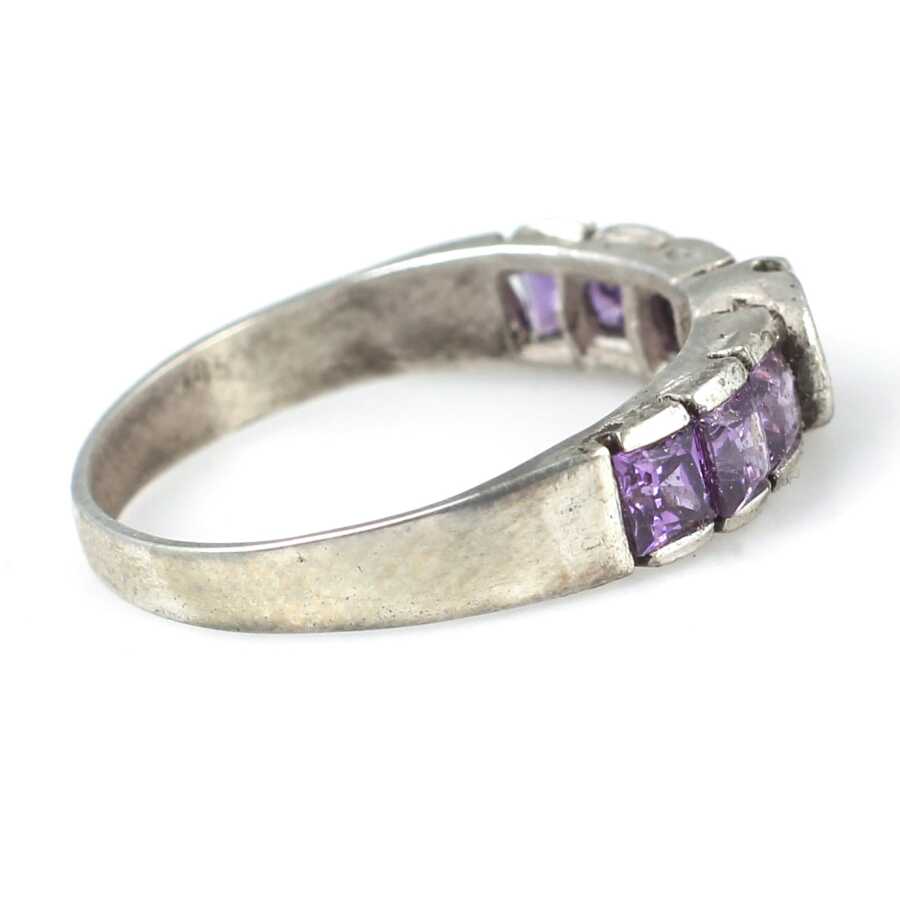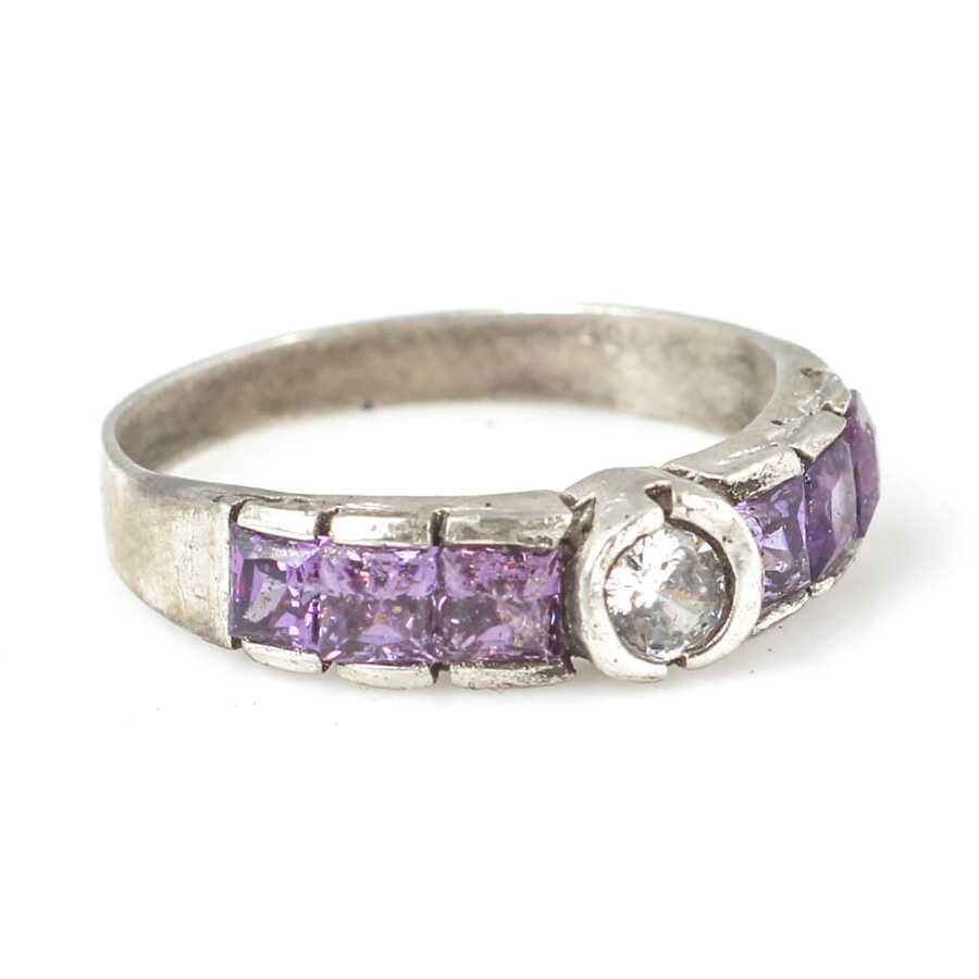 Gümüş yüzük 925 ayar gümüşten yapılmıştır. Gümüş yüzüğün üst kısmı 0,5 cm boyutlarındadır. Yüzük mor ve beyaz zirkon taşlıdır. Yüzük 13 ölçüdür. Tüm ölçüler yapılabilmektedir. Ağırlığı 2,13 gramdır.