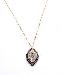 925 Ayar Gümüş Nazar Mekik Kolye, Sarı - Beyaz, Mavi Taş