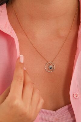 925 Ayar Gümüş Nazar Boncuklu Halka Kolye