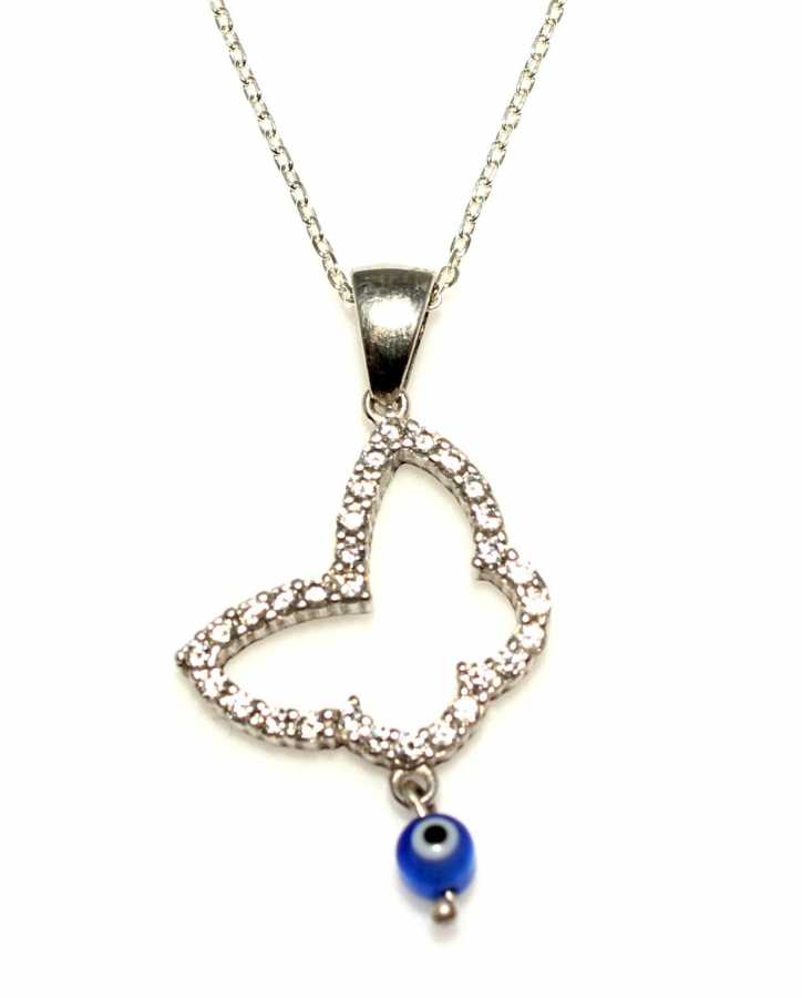 925 Ayar Gümüş Nazar boncuklu Kelebek Kolye, Beyaz - Beyaz Taş