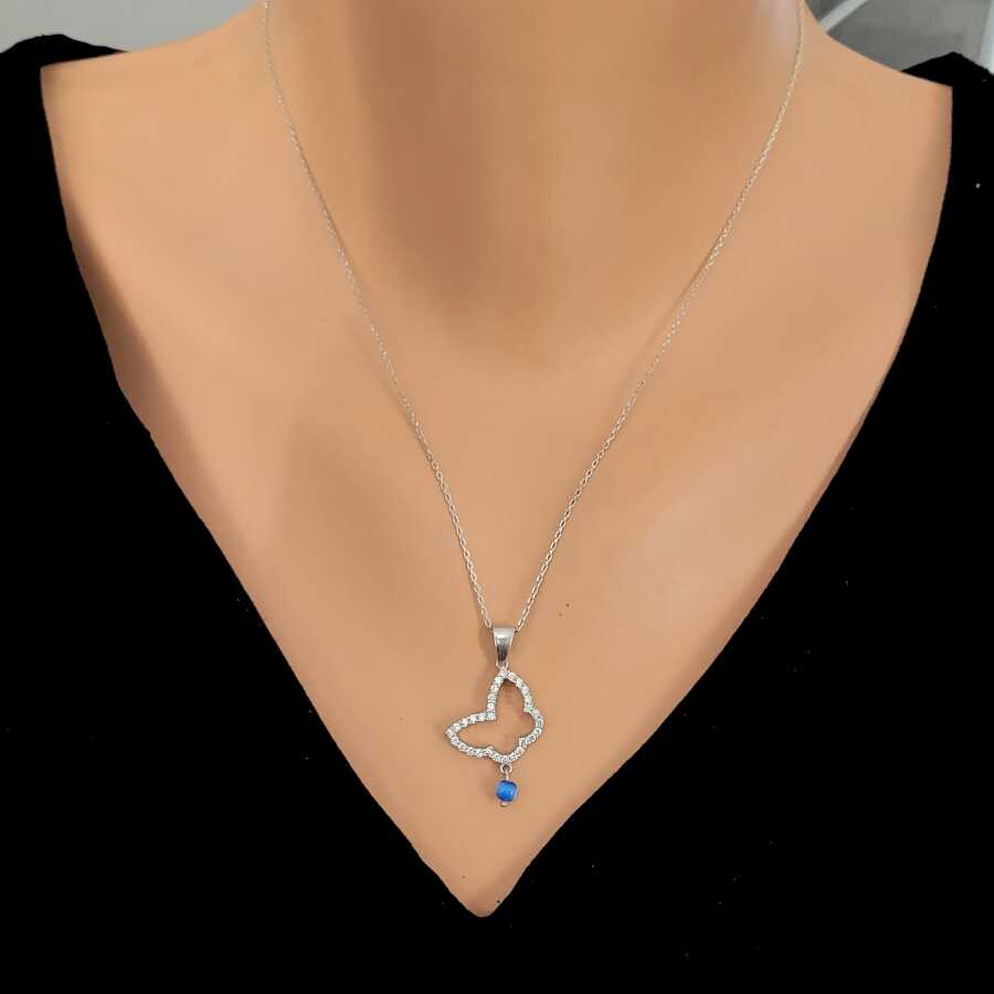 Gümüş kolye 925 ayar gümüşten yapılmıştır. Kelebek model kolye 1,7 cm'ye 1,3 cm boyutlarındadır. Zinciri 42 cm uzunluğundadır. Kolyenin taşları zirkondur. Ağırlığı 2,84 gramdır.