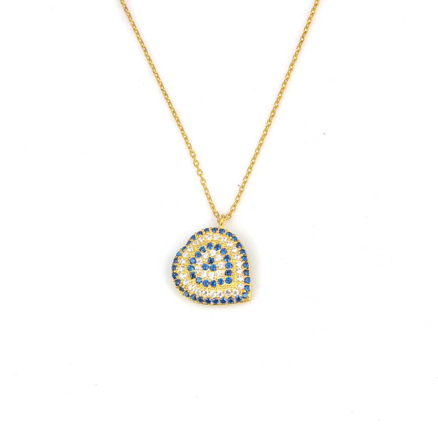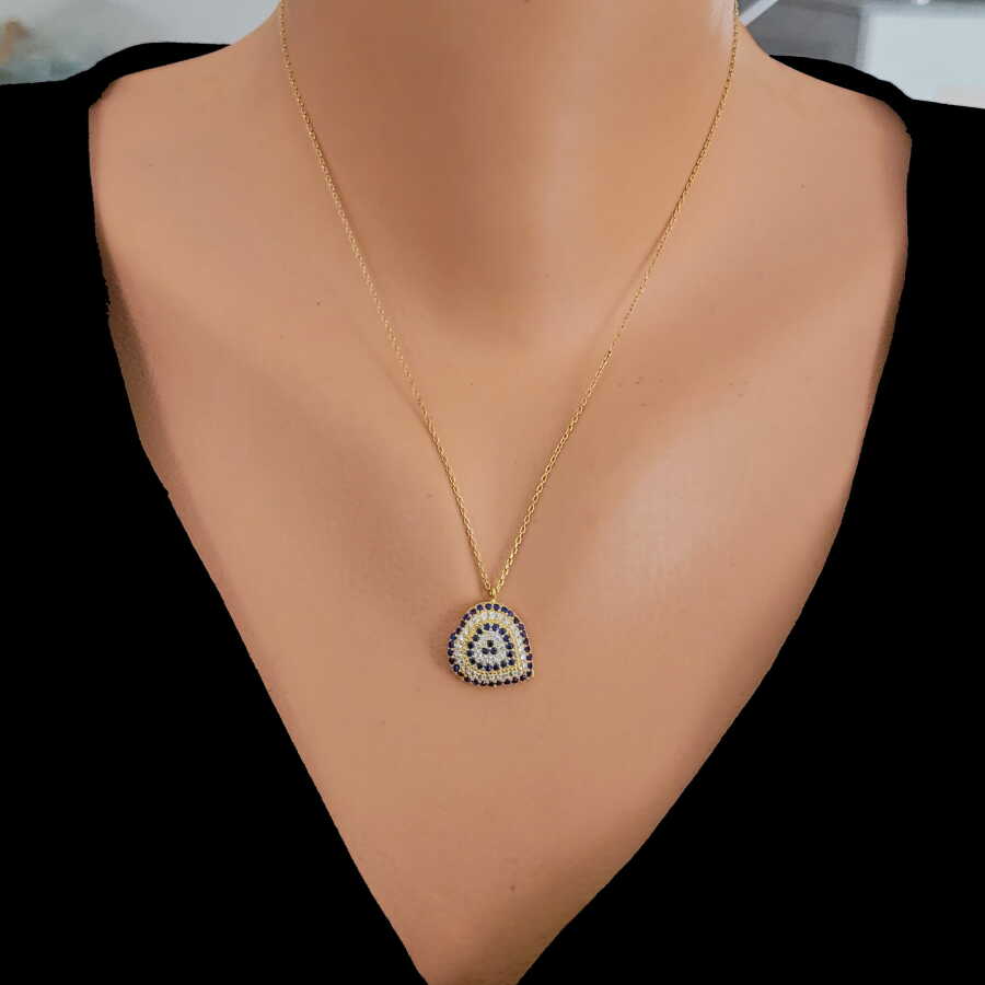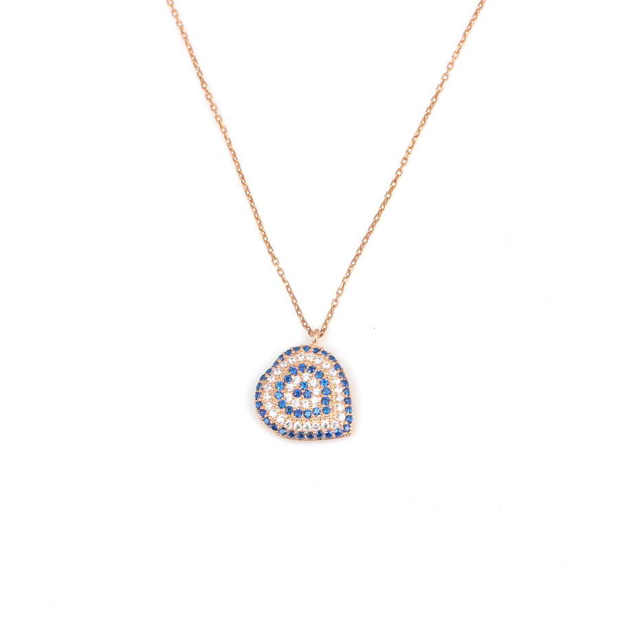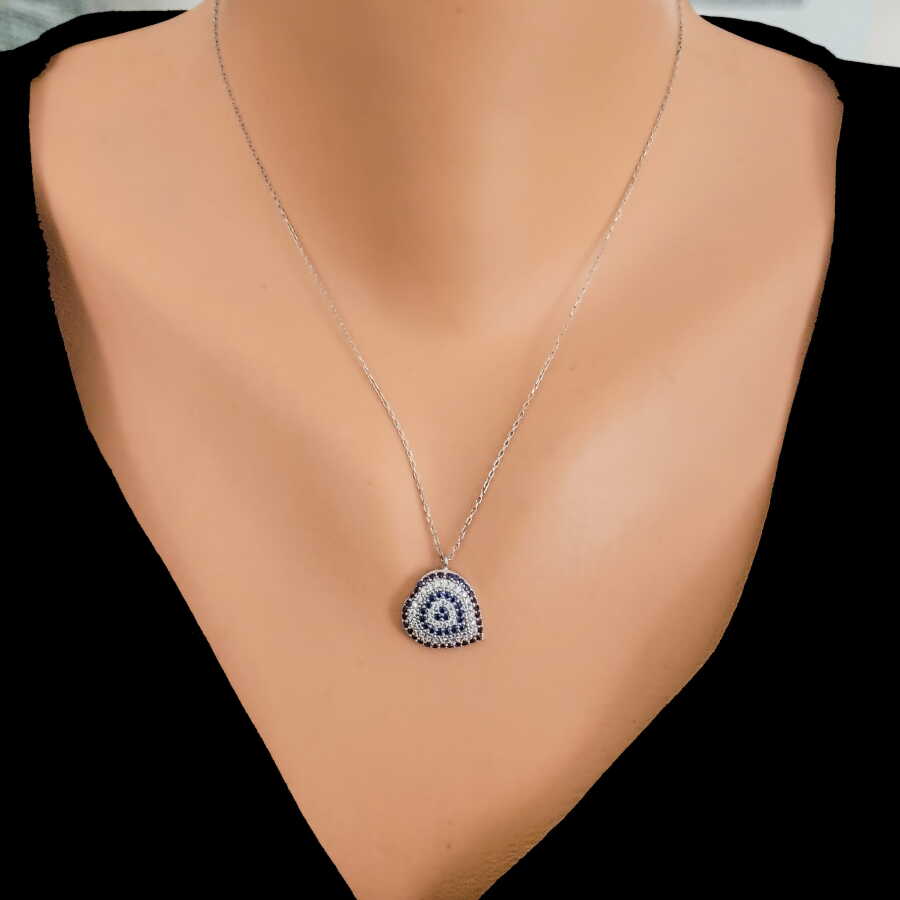 Gelince Haber Ver Sevginin simgesi kalp formunu, nazarın koruyucu anlamıyla buluşturan bu 925 ayar gümüş mavi & beyaz taşlı kolye; estetik dizilimi ve dengeli tasarımıyla dikkat çeker. Kalp formu içerisine yerleştirilen mavi ve beyaz taşlar, nazar figürünü çağrıştıran özel bir desen oluşturur ve kolyeye hem anlam hem de güçlü bir stil kazandırır.