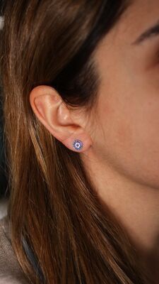 Gümüş küpe 925 ayar gümüşten yapılmıştır. Nazar boncuğu şeklindeki küpe 0,8 cm boyutlarındadır. Küpe zirkon taşlıdır. Ağırlığı 1,16 gramdır.