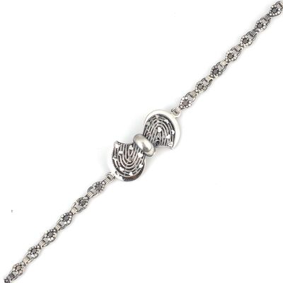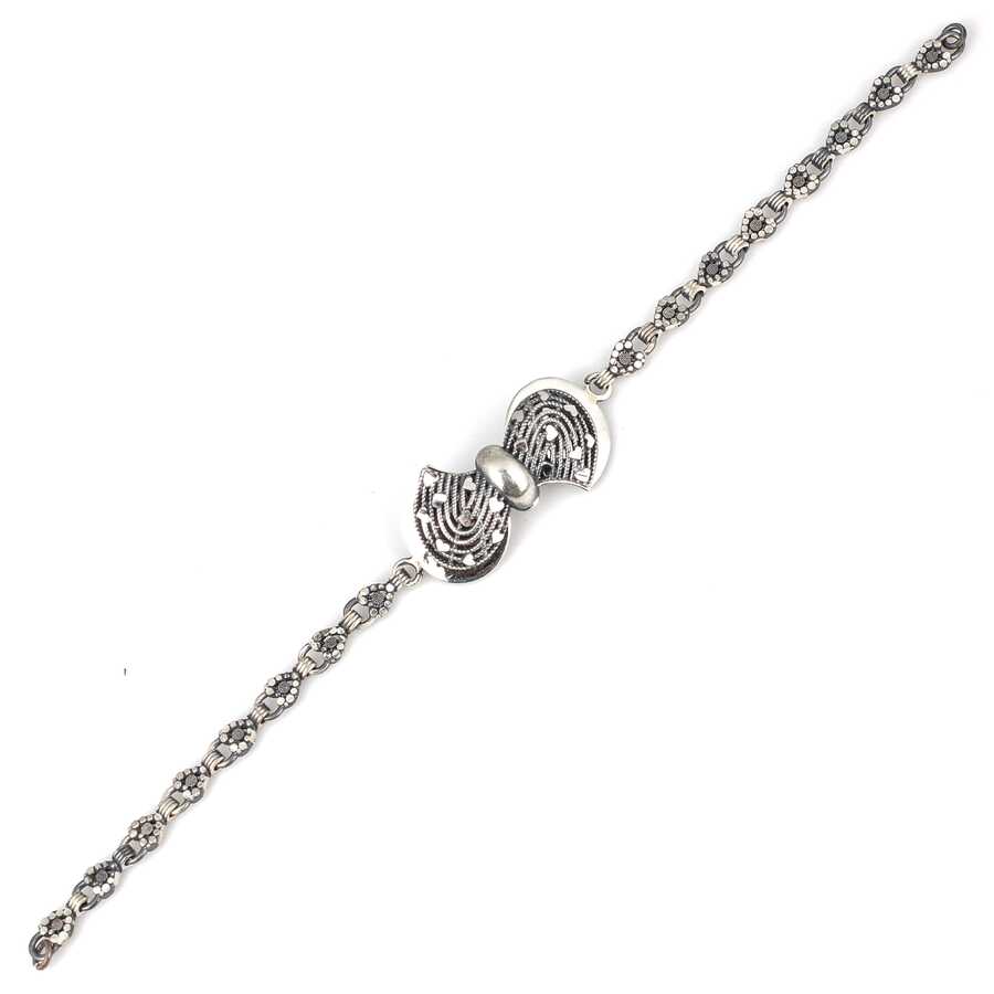Bileklik 925 ayar gümüşten imal edilmiştir. El işi el kalemli bileklik 18,5 cm uzunluğundadır. Bilekliğin ortasında kurdele figürü 1,7 cm'ye 3,6 cm boyutlarındadır. Bileklik taşsızdır. Gümüş bileklik 11,25 gram ağırlığındadır.
