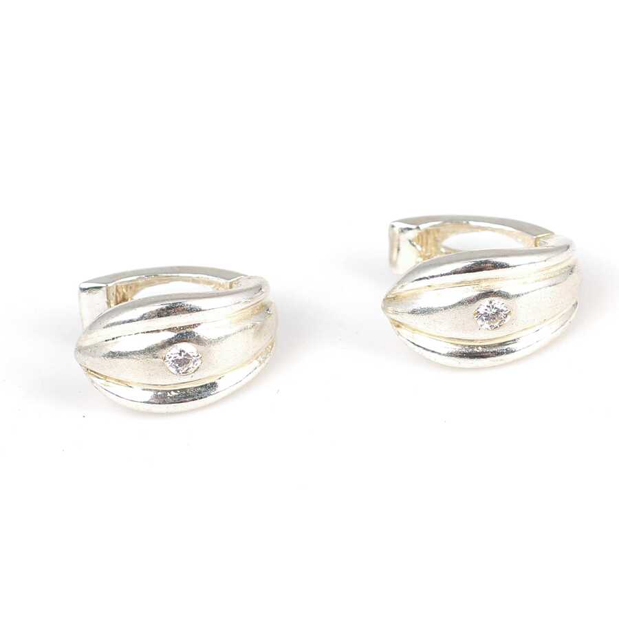Gümüş küpe 925 ayar gümüşten yapılmıştır. Çift oluklu model J küpe 0,8 cm'ye 1,5 cm boyutundadır. Küpe beyaz renk zirkon taşlıdır. Ağırlığı 4,87 gramdır.