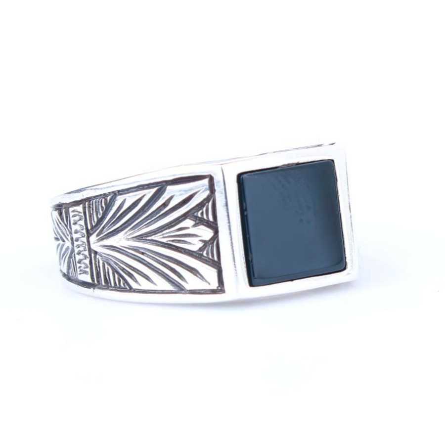 925 Ayar Gümüş Oniks Taş Desenli Erkek Yüzük