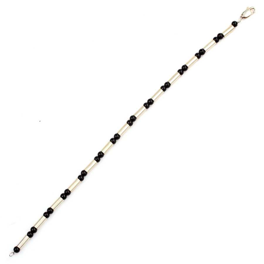 Bileklik 925 ayar gümüşten imal edilmiştir. Gümüş boru model bileklik 0,4 cm eninde ve 22 cm uzunluğundadır. Bileklik oniks taşlıdır. Bileklik taş aralarında gümüş parçalar kullanılarak tasarlanmıştır. Gümüş bileklik 7,76 gram ağırlığındadır.
