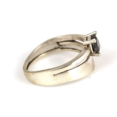 Gümüş yüzük 925 ayar gümüşten yapılmıştır. Alyans ve tektaş şeklinde gümüş yüzüğün taşı 0,5 cm boyutlarındadır. Yüzük zirkon taşlıdır. Resimdeki yüzük 15 ölçüdür, ancak tüm ölçüler özel olarak yapılabilmektedir. Ağırlığı 3,04 gramdır.