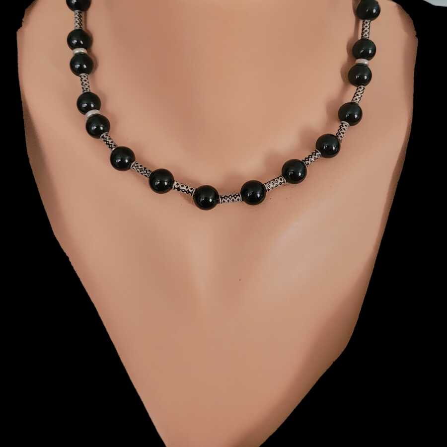 925 ayar gümüş 42 cm oniks taşlı kolye. Gramı: 41,86