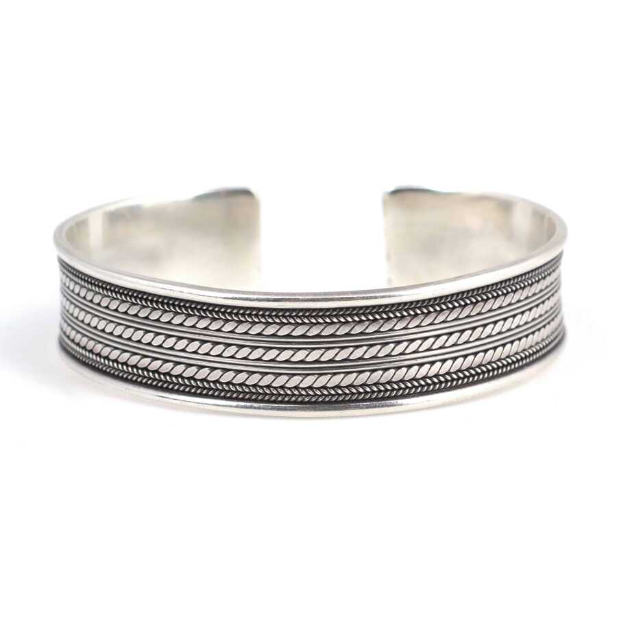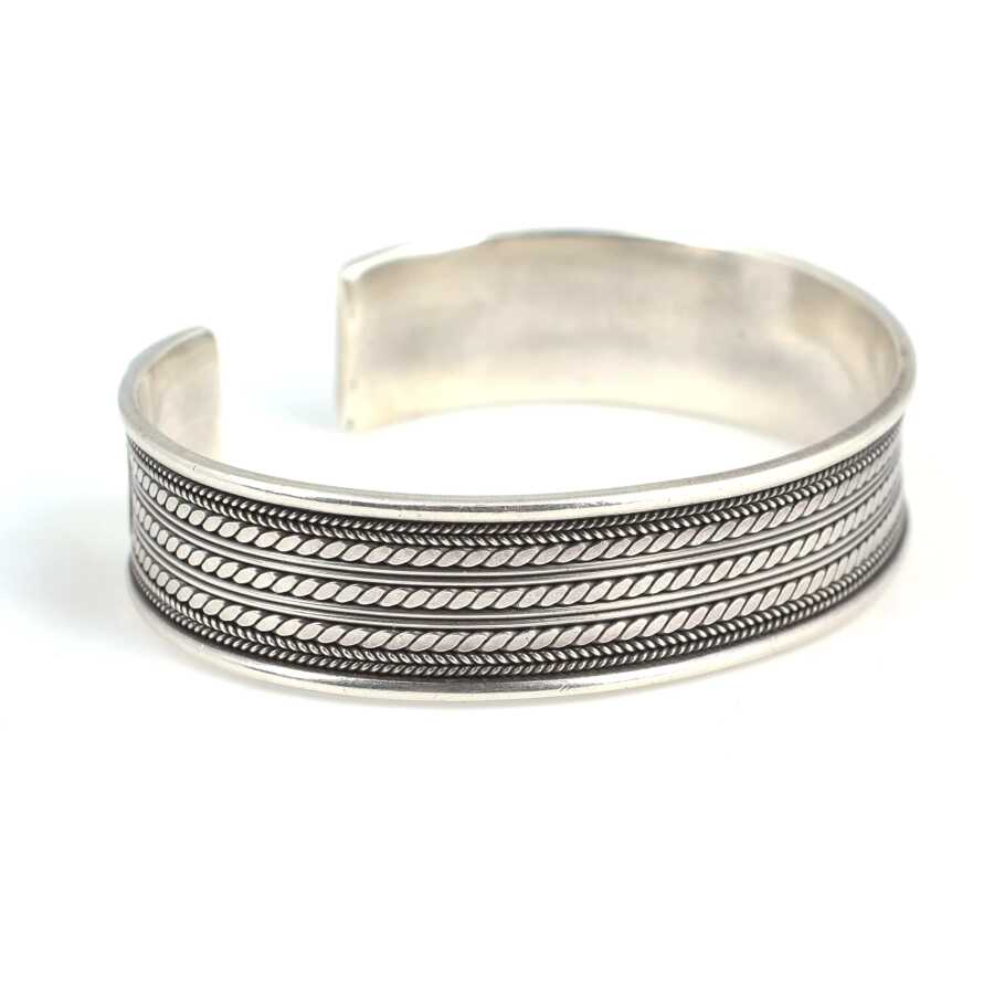 Gümüş bilezik 925 ayar gümüşten imal edilmiştir. Gümüş bileziğin altı açıktır. Bilezik 5,9 cm çapındadır ve 1,5 cm enindedir. Bilezik taşsızdır ve altı açık olduğu için ayarlanabilir. Ağırlığı 33,42 gramdır.