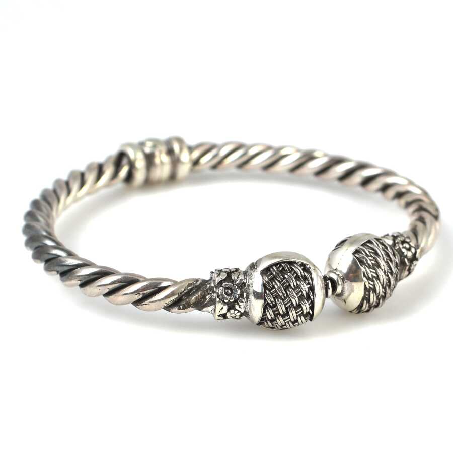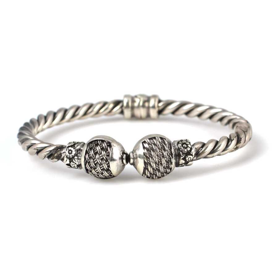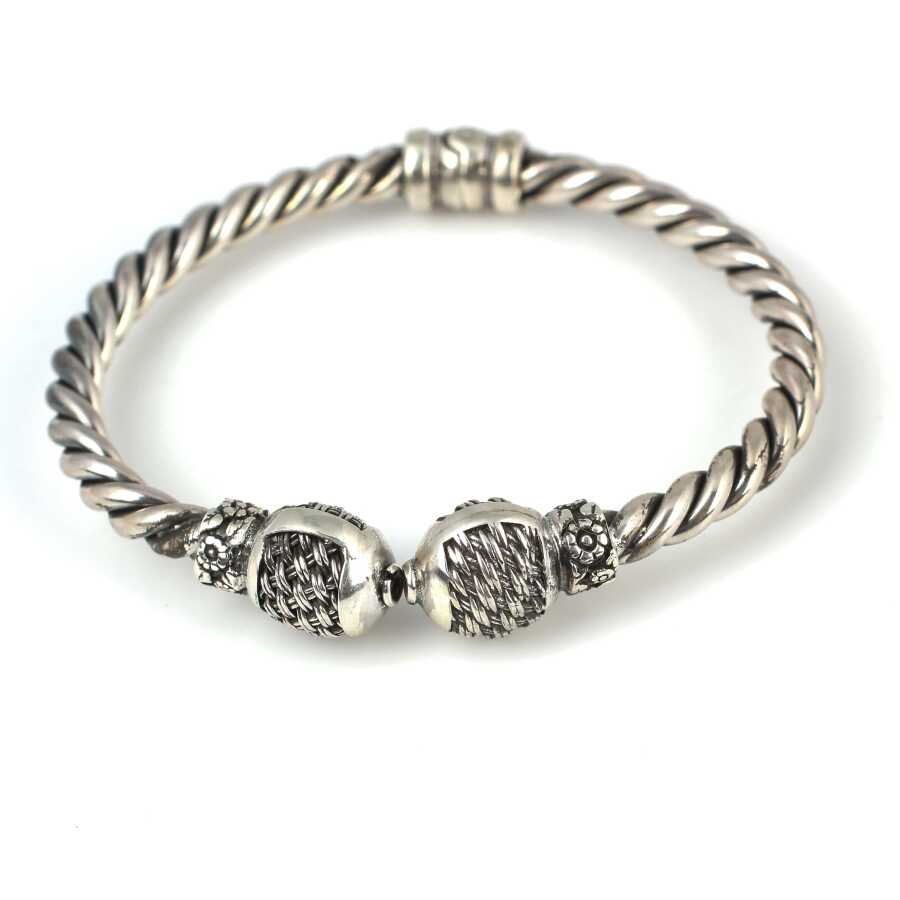 Bilezik 925 ayar gümüşten imal edilmiştir. Örgü toplu bilezik 5,9 cm çapındadır. Bileziğin önündeki toplar 1,2 cm kalınlığındadır. Bilezik yaylı ve taşsızdır. Ağırlığı 25,05 gramdır.