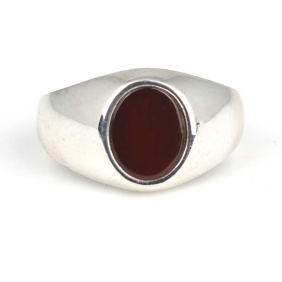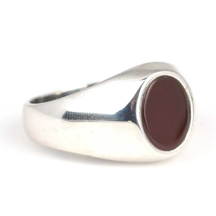 925 Ayar Gümüş Oval Akik Taşlı Erkek Yüzüğü