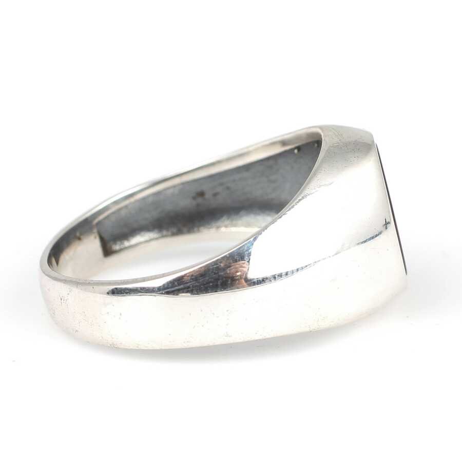 Yüzük 925 ayar gümüşten üretilmiştir. Taşlı yüzük 1,0 cm'ye 0,8 cm boyutlarındadır. Resimdeki yüzük 25 ölçüdür, ancak tüm ölçüler özel olarak yapılabilmektedir. Yüzük akik renk taşlıdır. Ağırlığı 6,82 gramdır.