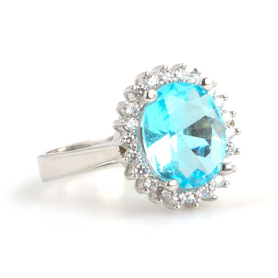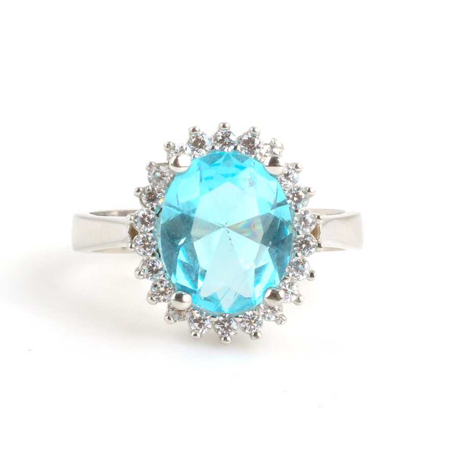 Notify me when its in stock Yüzük 925 ayar gümüşten üretilmiştir. Oval taşlı anturaj model yüzük 1,5 cm'ye 1,3 cm boyutlarındadır. Resimdeki yüzük 17 ölçüdür, ancak tüm ölçüler yapılabilmektedir. Yüzük zirkon ve akuamarin renk taşlıdır. Ağırlığı 3,85 gramdır.