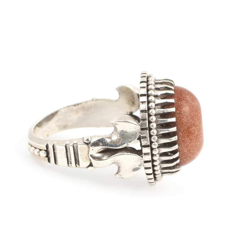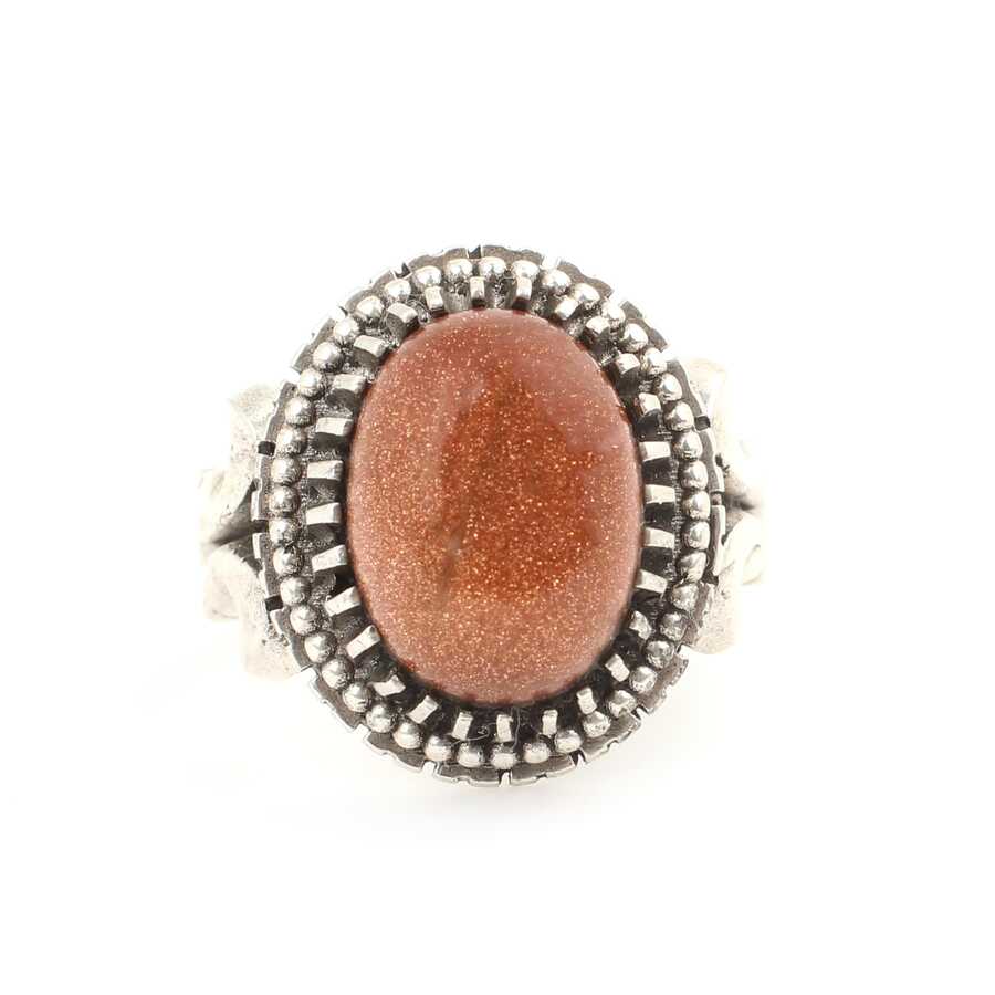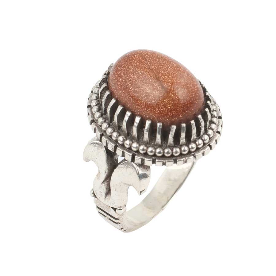 925 Ayar Gümüş Oval Altın Tozu Kumtaşı Taşlı Erkek Yüzüğü