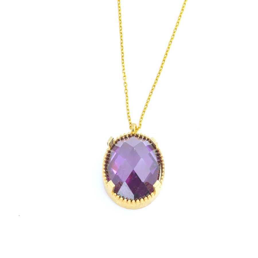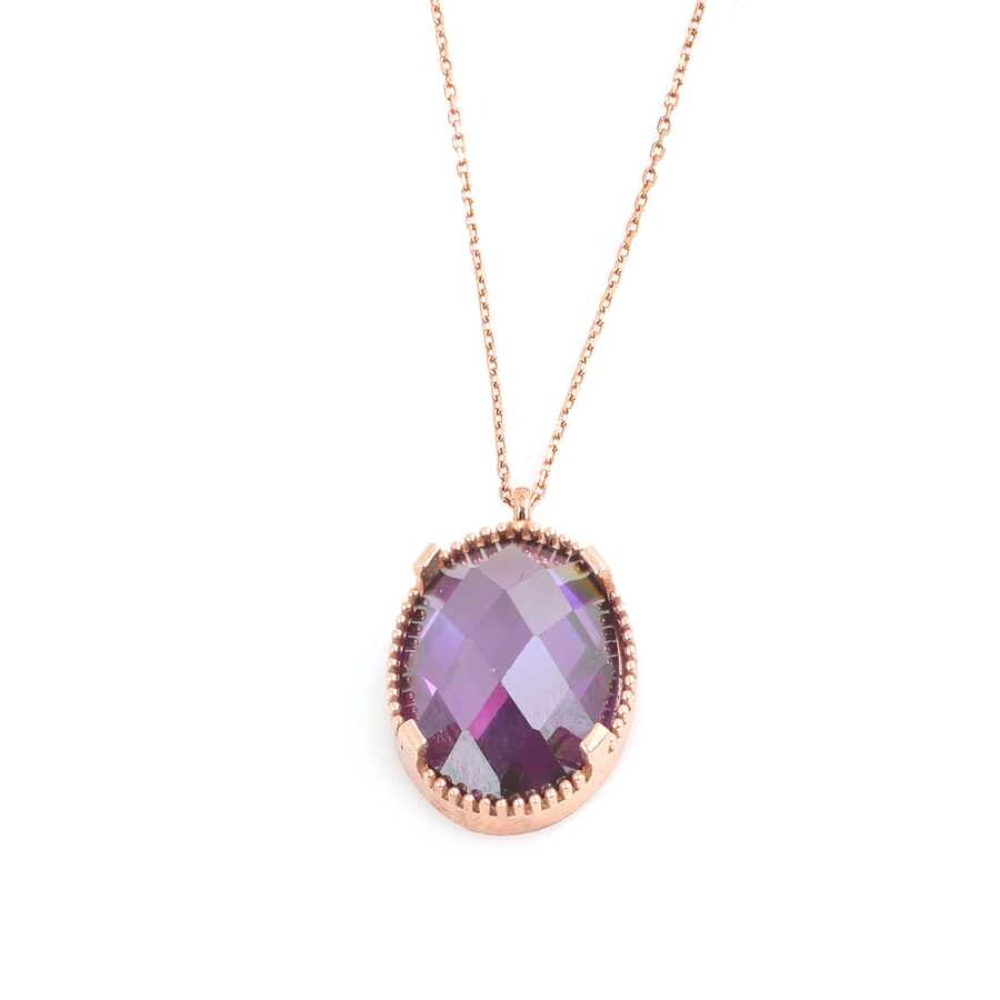 925 ayar gümüştür. Oval ametist taşlı kolye. 40 cm zincir uzunluğu + 5 cm uzatması ile toplam 45 cm uzunluğundadır. Beyaz , Sarı, Pembe renkleri mevcuttur. Gramı:3,85 gr