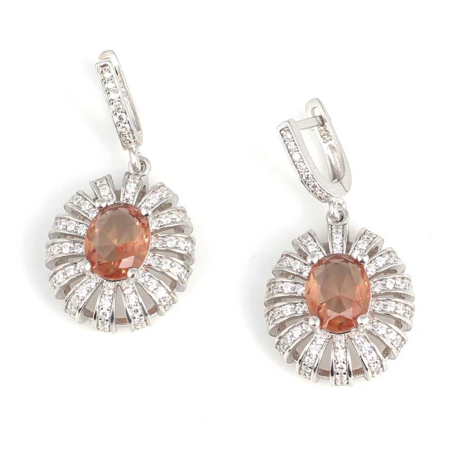 Gümüş küpe 925 ayar gümüşten yapılmıştır. Oval anturaj model sallantılı küpe 3,5 cm'ye 1,9 cm boyutlarındadır. Zultanit taşı 0,8 cm'ye 1,0 cm boyutundadır. Küpe beyaz zirkon ve zultanit taşlıdır. Ağırlığı 11,63 gramdır.