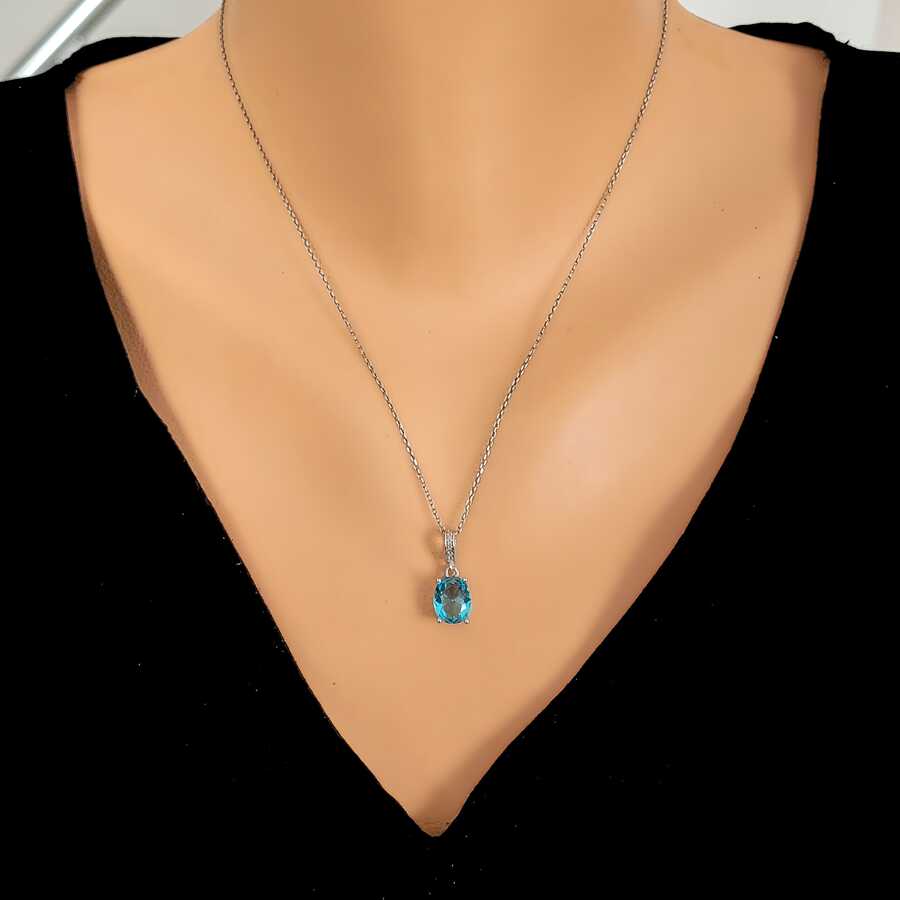 925 Ayar Gümüş Oval Büyük Boy Akuamarin Taşlı Kolye
