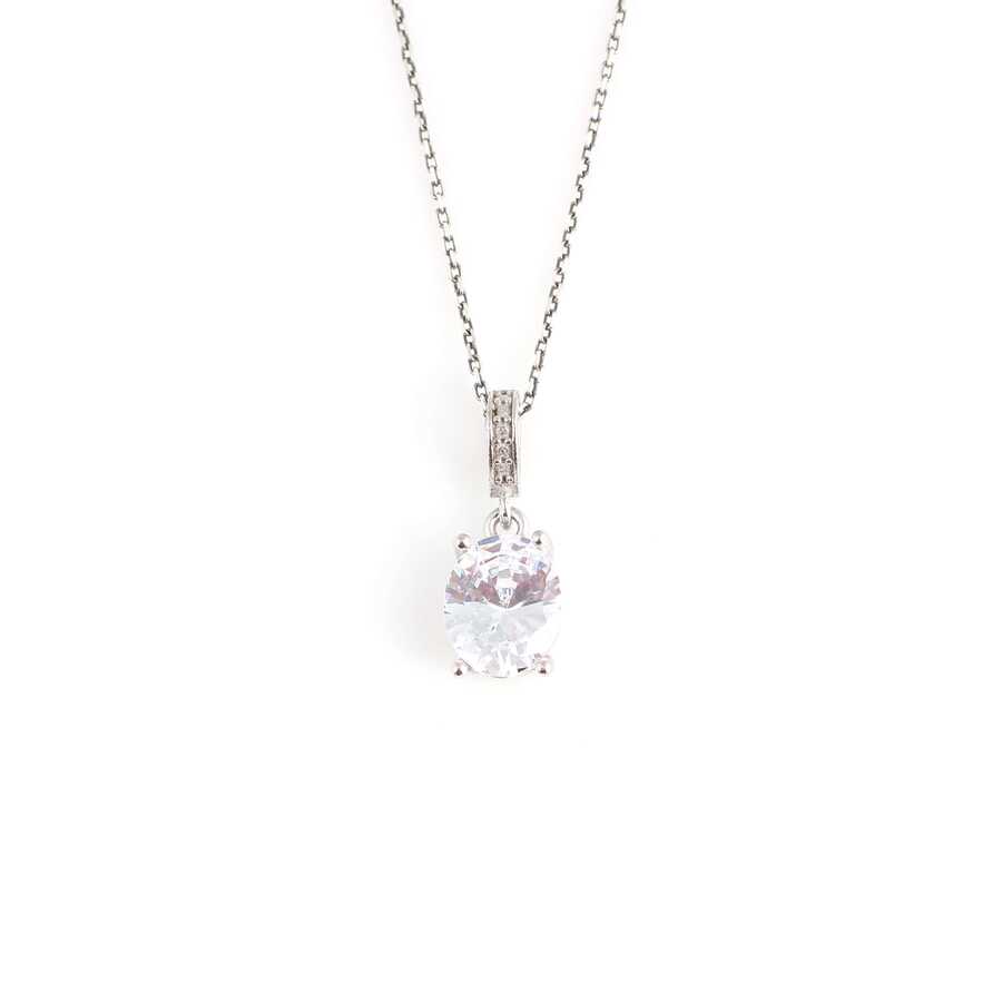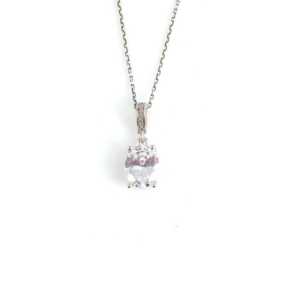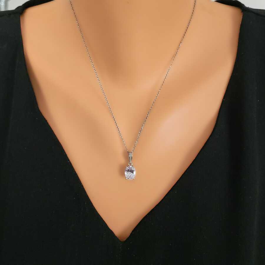 925 Ayar Gümüş Oval Büyük Boy Zirkon Taşlı Kolye