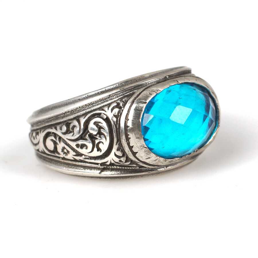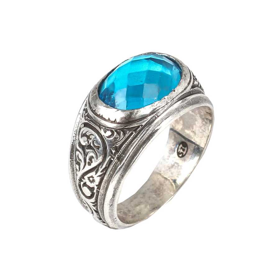 925 Ayar Gümüş Oval Fasetli Akuamarin Taşlı Erkek Yüzük