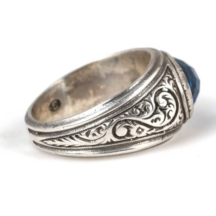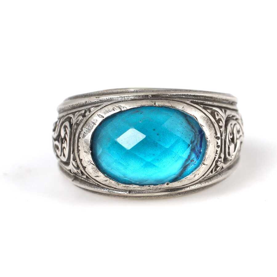 Yüzük 925 ayar gümüşten üretilmiştir. Resimdeki yüzük 23 ölçüdür, ancak tüm ölçüler özel olarak yapılabilmektedir. Yüzük akuamarin renk taşlıdır. Ağırlığı 11,41 gramdır.