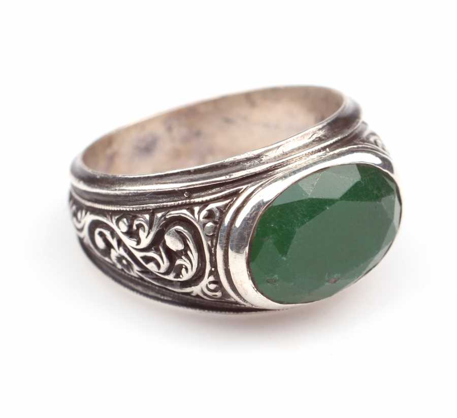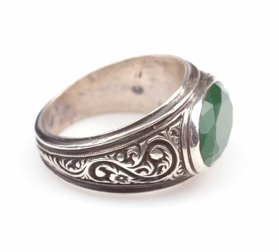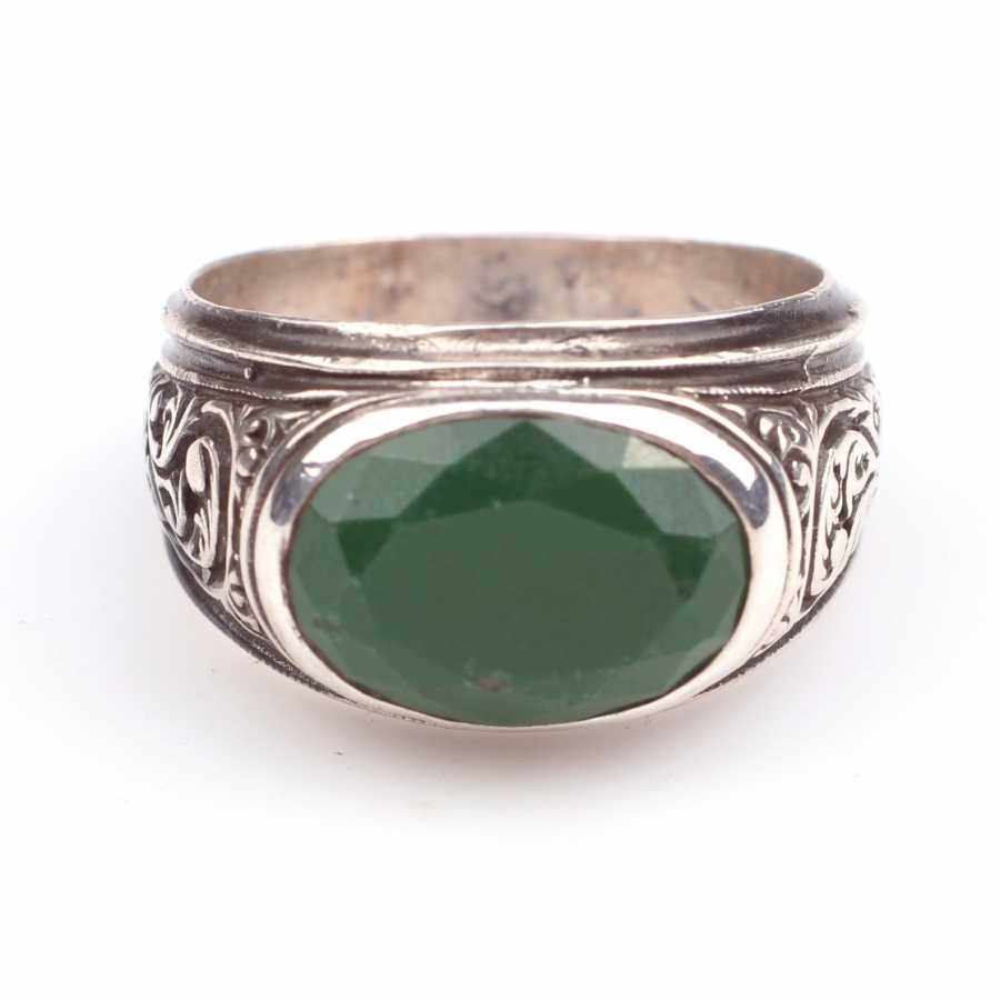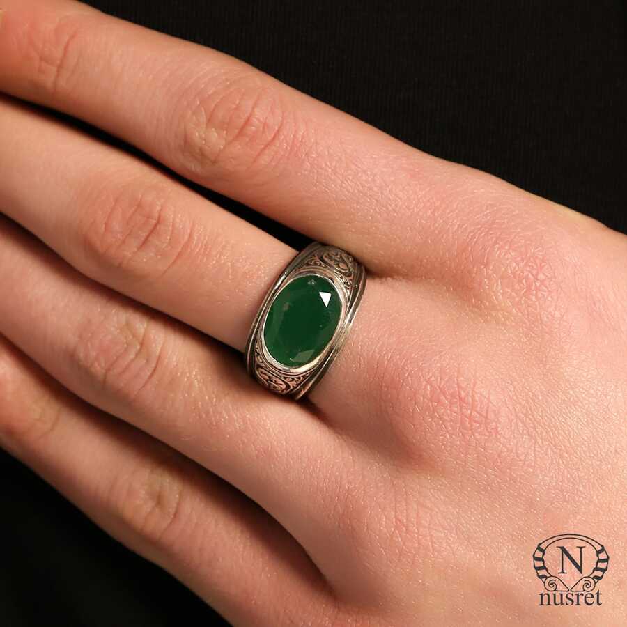 925 Ayar Gümüş Oval Fasetli Yeşil Agat Taşlı Erkek Yüzük