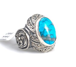 925 Ayar Gümüş Oval Firuze Taşlı İşlemeli Erkek Yüzük