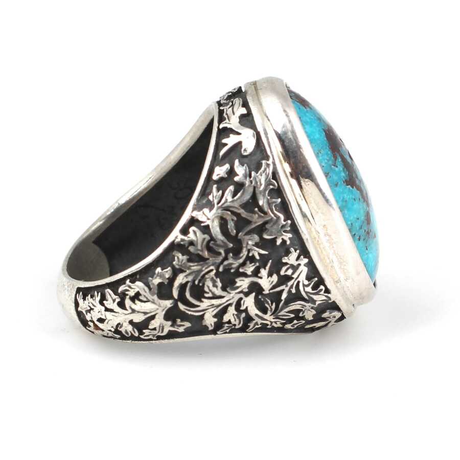Gelince Haber VerYüzük 925 ayar gümüşten üretilmiştir. Taşlı yüzüğün üst kısmı 2,5 cm'ye 1,7 cm boyutlarındadır. Yüzüğün üzerine el kalemi atılmıştır. Resimdeki yüzük 20 ölçüdür, ancak tüm ölçüler özel olarak yapılabilmektedir. Yüzük gerçek turkuaz taşlıdır. Ağırlığı 15 gramdır.