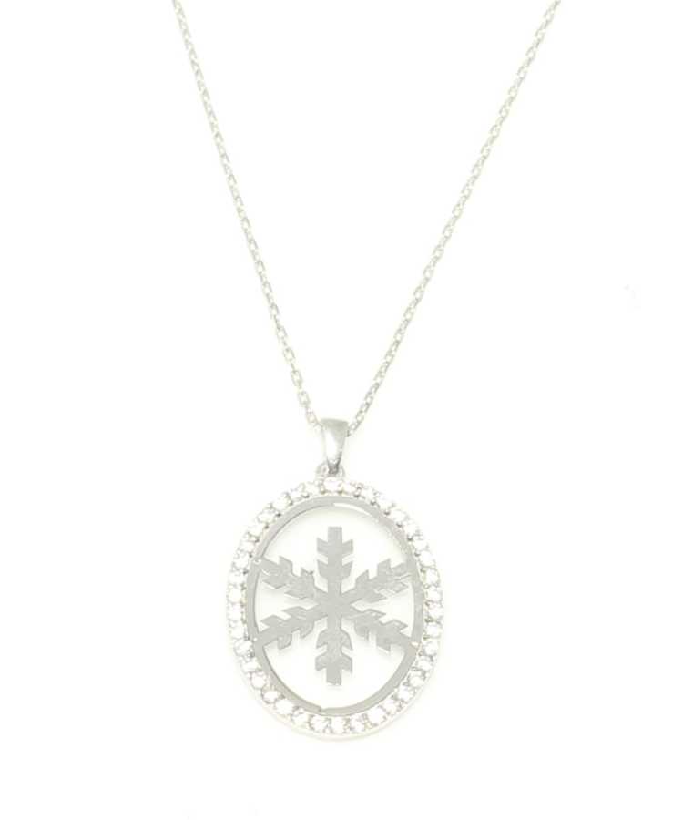 Gelince Haber Ver925 Ayar Gümüştür. Zincir boyutu: 41 cm. 2,7 x 1,7 cm boyutunda Taşlı Oval Kar tanesi Kolye.
