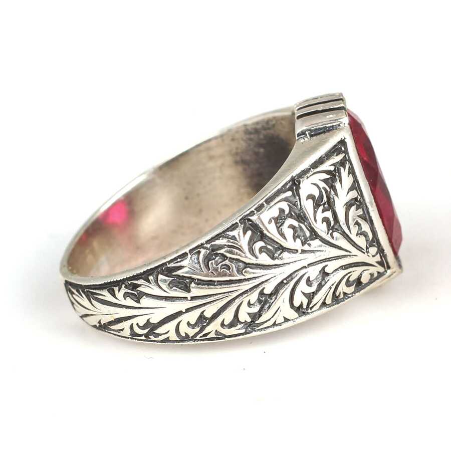 Yüzük 925 ayar gümüşten üretilmiştir. Taşlı yüzük 1,2 cm'ye 1,1 cm boyutlarındadır. Resimdeki yüzük 19 ölçüdür, ancak tüm ölçüler özel olarak yapılabilmektedir. Yüzük kırmızı zirkon taşlıdır. Ağırlığı 10,1 gramdır.